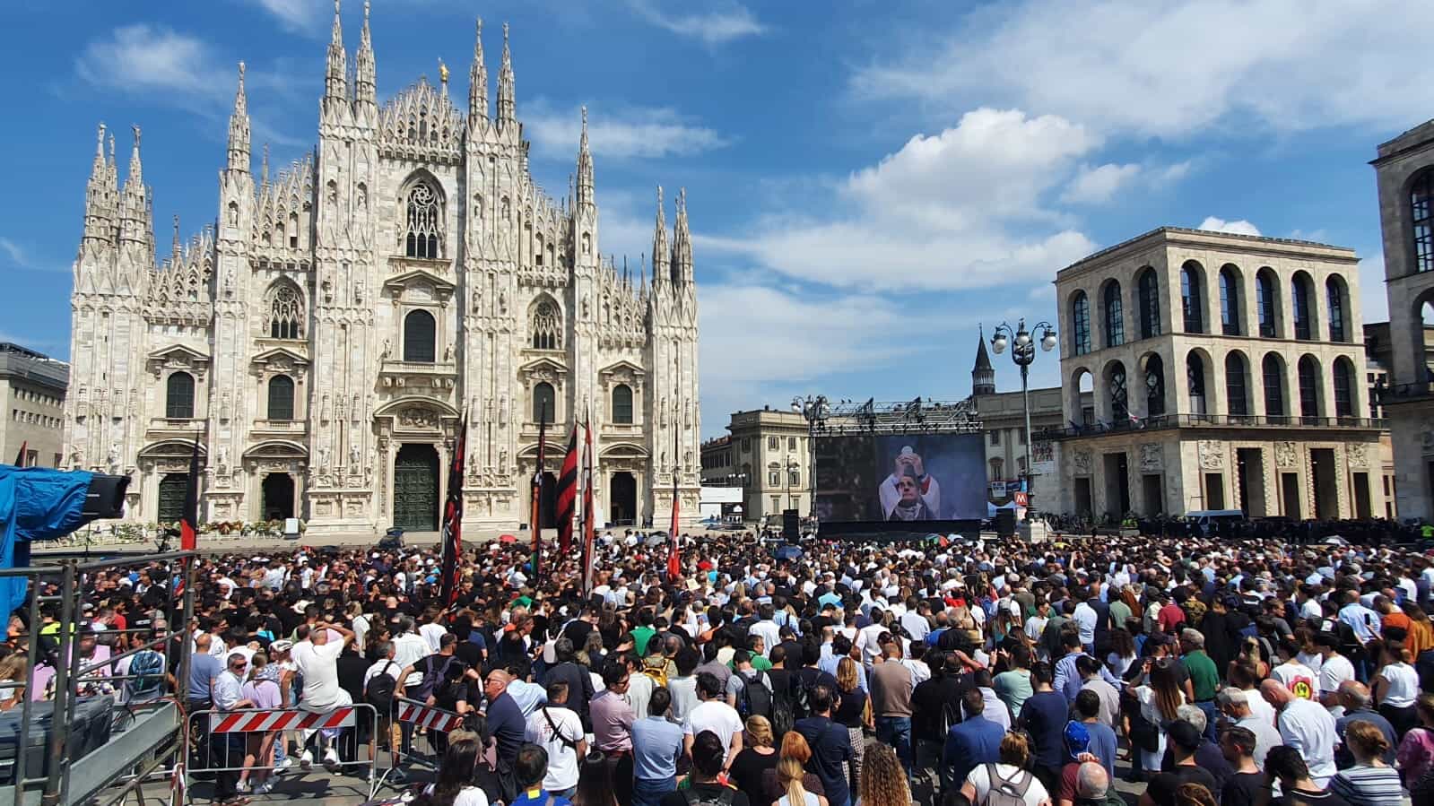 Sulla piazza oltre diecimila persone, con bandiere del Milan e del Monza e con numerosi striscioni, che hanno intonato a più riprese cori da stadio, uno tra tutti “C’è solo un presidente”. I funerali di Stato del Cavaliere, celebrati da monsignor Mario Delpini, arcivescovo di Milano, si sono svolti seguendo il rito liturgico ufficiale adottato dalla Chiesa latina, quello ambrosiano. Un lungo applauso ha accompagnato l’arrivo del feretro nel Duomo di Milano e si è protratto per tutto il passaggio lungo la navata centrale. Nel corso dell’omelia, monsignor Delpini, ha ricordato Berlusconi, come “uomo d’affari” ma anche “uomo politico”. Ma prima di tutto “è stato un uomo” con “un desiderio di vita, un desiderio di amore, un desiderio di gioia”. Al termine della funzione, quando il feretro è stato riportato in piazza del Duomo, prima della chiusura del portellone del carro funebre sia la compagna Marta Fascina, in lacrime, che i figli si sono avvicinati per una “carezza” e un ultimo bacio. Poi sono arrivate le più alte cariche dello Stato per un ultimo saluto. Applausi dalla piazza e si sono levati cori dalla folla, soprattutto dai tifosi. Alcuni hanno intonato l’inno nazionale. A quel punto l’auto che trasporta la bara è ripartita in direzione di Arcore.