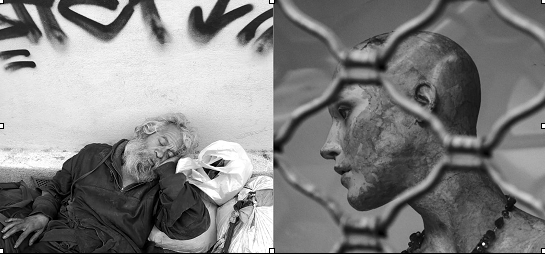 La foto con il clochard. Perchè il clochard? Il clochard qualcuno lo fa per scelta, invece molti altri hanno subito violenza perchè avranno sbagliato, non sono stati perdonati e si trovano senza niente a vivere in mezzo alla strada, a vivere fuori sia in estate che in inverno ed a chiedere l’elemosina.