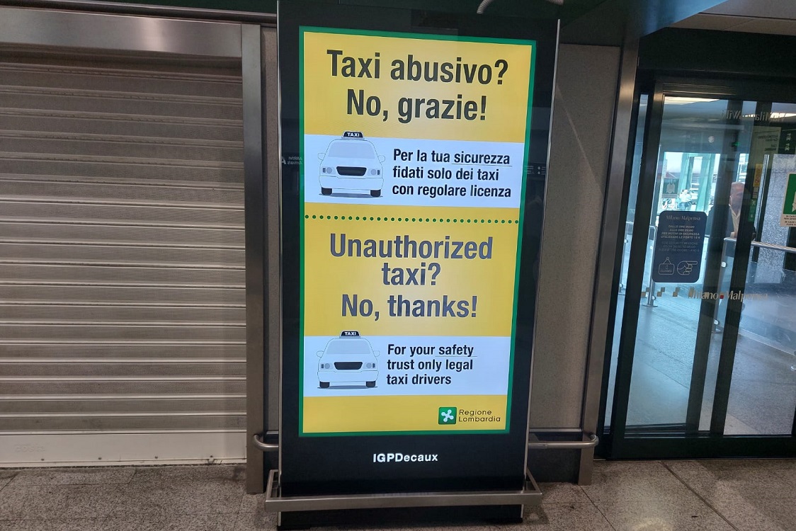 Ha preso il via ieri la campagna di sensibilizzazione contro i taxi abusivi promossa dall’assessorato alla Sicurezza di Regione Lombardia negli aeroporti di Malpensa e Linate. Nei prossimi giorni sarà estesa nelle stazioni di Ferrovie Nord e resterà attiva sino alla fine di agosto.
