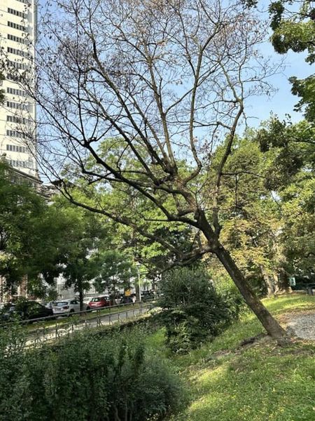 I “biofancazzisti” lo vedono così, in realtà è come nella foto a destra. Segnalato da mesi e mesi, e non solo da noi, questo povero albero seccato continua a essere un pericolo ignorato. Se non tolgono neanche questo cosa vogliamo pretendere?