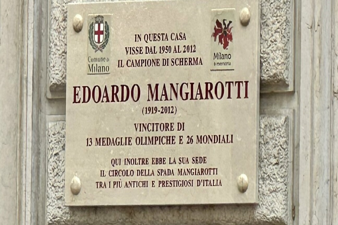 Il campione più titolato dello sport italiano e ancora detentore del record nazionale di titoli con 13 medaglie olimpiche (6 ori, 5 argenti, 2 bronzi) e 26 mondiali (13 ori, 8 argenti e 5 bronzi). Partecipò a cinque edizioni dei Giochi Olimpici, tra il 1936 e il 1960 di cui fu per due volte portabandiera della squadra italiana: a Melbourne nel 1956 e a Roma nel 1960. E’ la storia di Edoardo Mangiarotti, grande schermidore milanese, specialista di spada e fioretto che oggi la città ha ricordato, a dieci anni dalla scomparsa, con una targa in sua memoria scoperta al civico 24 di via Solferino, la casa dove visse, si allenò e morì, a 93 anni, il 25 maggio del 2012. Un momento di celebrazione voluto a preludio del grande evento sportivo, il Campionato Mondiale Assoluto di Scherma (Fie Fencing World Championship – Milan 2023) che Milano ospiterà all’Allianz MiCo dal 22 al 30 luglio. Nella sua lunga carriera Edoardo Mangiarotti ha partecipato a 17 edizioni estive dei Giochi Olimpici, vincendo nella prima, nel 1936 a Berlino, un oro a squadre a soli 17 anni; ha partecipato successivamente ad altre 4 edizioni dei Giochi Olimpici (Londra 1948, Helsinki 1952, Melbourne 1956 e Roma 1960). È ancora oggi il detentore del record italiano di medaglie, vantando 13 medaglie olimpiche (6 ori, 5 argenti, 2 bronzi) e 26 mondiali (13 ori, 8 argenti e 5 bronzi). È due volte portabandiera della squadra italiana, nel 1956 a Melbourne e nel 1960 a Roma, e ha terminato la sua carriera come dirigente sportivo e giornalista della Gazzetta dello Sport. Insignito il 7 dicembre 1990 della Civica Benemerenza riposa al Cimitero Monumentale. Il suo nome è stato iscritto tra i grandi del Famedio.