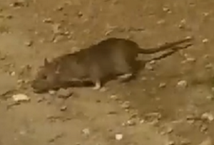 L’area verde impropriamente usata fino a tarda notte come luogo di consumazione di alcolici è così piena di rifiuti da richiamare numerosi topi.