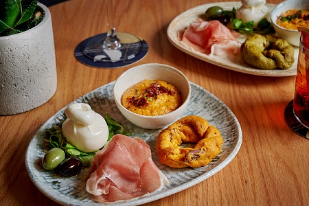 Il nuovo Aperitivo è nato dalla in collaborazione con Taralleria Napoletana, il brand dedicato agli amanti del tarallo e, fino al 31 ottobre il celebre prodotto da forno partenopeo – disponibile in diverse varianti – diventa protagonista del piatto di sfiziosità che propone l’iconica Burratina Pugliese, lo sfizioso Hummus ai Peperoni Rossi e il Prosciutto Crudo di Parma DOP.