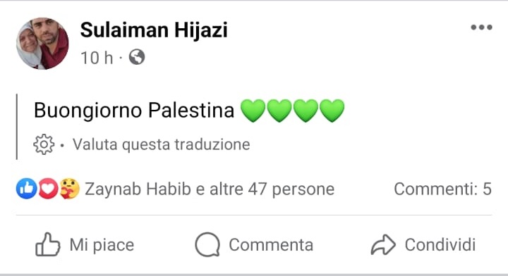 Ad esempio, ecco cosa scrive sui social il genero del responsabile della futura moschea di Via Esterle (il genero in alcuni vecchi post aveva inneggiato ad Hamas). Poi ha continuato con l’apologia, pur smentendo costantemente la sua affiliazione formale al movimento terrorista. Peraltro anche il futuro Imam di via Esterle, richiesto di un commento su quanto avviene in Israele, ha commentato di non aver letto i giornali.