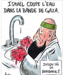 Con una vignetta del suo disegnatore Foolz sul taglio delle forniture idriche ed elettriche in seguito all’attacco di Hamas a Israele, Charlie Hebdo nel suo ultimo numero ridimensiona il vittimismo dei fondamentalisti, sorpresi dalle conseguenze dei loro massacri, e ridicolizza anche la pretesa di equidistanza di chi attribuisce responsabilità e crimini a entrambe le parti in conflitto.