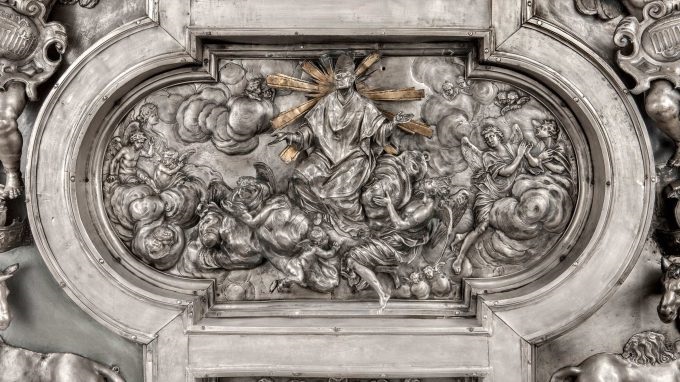 Al 1619 risale la delibera della decorazione in lamina d’argento sbalzato, che richiese oltre cinquant’anni di lavoro. I donatori furono la Veneranda Fabbrica, che vi aveva stanziato la cifra mensile di seicento lire imperiali, gli orefici milanesi, il conte Borromeo, il cardinale Litta (Arcivescovo di Milano dal 1652 al 1679) e i moltissimi cittadini che si unirono nel sostegno all’iniziativa.