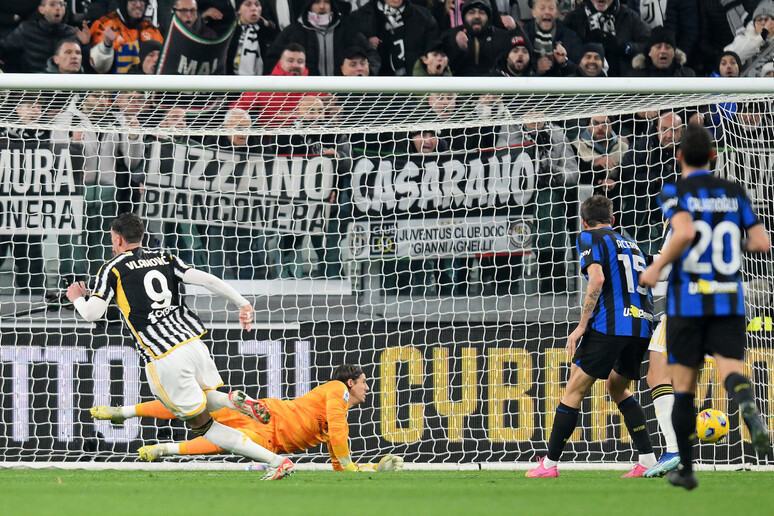 Il big match dello Stadium inizia e finisce su binari paralleli: le due coppie offensive collezionano le reti che caratterizzano la sfida, per il resto regna l’equilibrio. Chiesa-Vlahovic da una parte, Thuram-Lautaro dall’altra: vantaggio bianconero al 27’, immediato pareggio nerazzurro al 33’. Due reti simili, di prima intenzione, su ripartenze: Vlahovic e Lautaro timbrano la sfida al vertice. Ora per l’Inter la testa è già in Portogallo, anche se la partita di Champions con il Benfica ha valenza relativa soltanto ad un eventuale primo posto nel girone, che i nerazzurri già qualificati tenteranno comunque di agguantare.