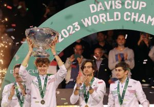 Jannik Sinner come Adriano Panatta, Filippo Volandri come Nicola Pietrangeli: dal 1976 al 2023, da Santiago del Cile a Malaga, l’Italia torna sul tetto del mondo 47 anni dopo, vincendo la seconda Insalatiera della sua Storia. Bastano i due singolari nella finale con l’Australia: 2-0, prima Arnaldi contro Popyrin, poi Jannik Sinner con De Minaur con tanto di bagel nell’ultimo set.