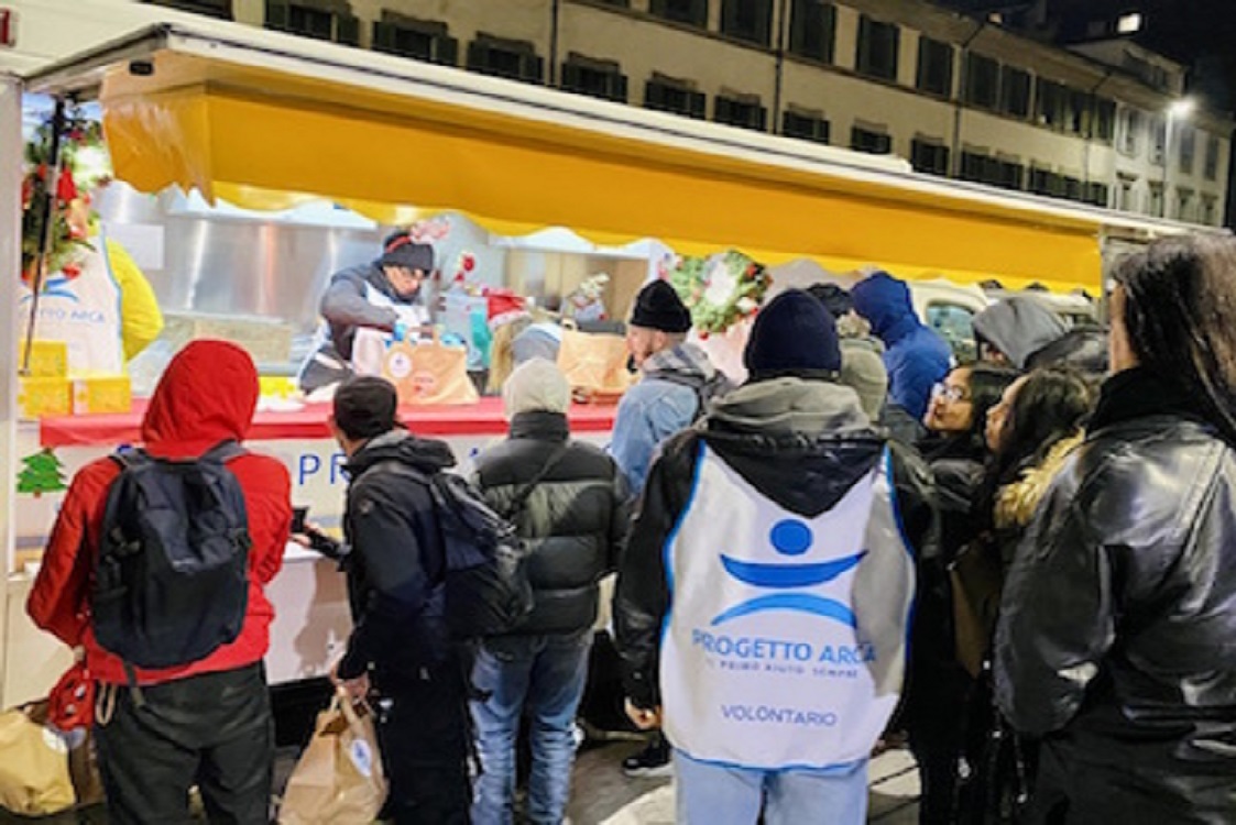 Una settimana di festeggiamenti in strada a Milano per essere a fianco di chi è più fragile: tornano le cene natalizie itineranti di Progetto Arca con speciali menù della tradizione distribuite grazie alle Cucine mobili, gli ormai noti foodtruck con forni e bollitori a bordo che girano per le città dispensando pasti caldi alle persone senza dimora. Nella settimana che precede il Natale, da lunedì 18 a domenica 24 dicembre, tutte le sere i volontari distribuiscono cene speciali a base di pasta al forno, torte salate con verdure, frutta e tanti piccoli panettoni in regalo. Giovedì 21, inoltre, viene allestita in centro città – sotto i portici di corso Europa – una lunga tavolata delle feste dove i volontari offriranno cena e regali a tutte le persone fragili che vorranno partecipare. Il menù, sempre con l’attenzione alle diverse culture e intolleranze, prevede tartine come antipasto, lasagne in doppia versione al ragù e alle verdure, pollo arrosto con patate al forno e l’immancabile panettone. La serata verrà allietata dai canti di Natale del coro di San Giovanni Battista in Trenno e dalla consegna di tanti regali, pensati come sempre per chi vive in strada: zaini capienti e borracce termiche. Uno speciale pensiero di Natale va anche alle famiglie in difficoltà che Progetto Arca sostiene dal punto di vista abitativo, fornendo case in housing sociale, e alimentare, mettendo a disposizione spese gratis nei Market solidali di recente apertura (4 solo a Milano). Ai pacchi viveri e alle spese alimentari sono destinati più di 2.500 panettoni. Per sostenere tutte le iniziative organizzate per il Natale, Progetto Arca ha lanciato la campagna “Illumina il Natale dei senzatetto”: https://sostieni.progettoarca.org/campagna/illumina-il-natale/