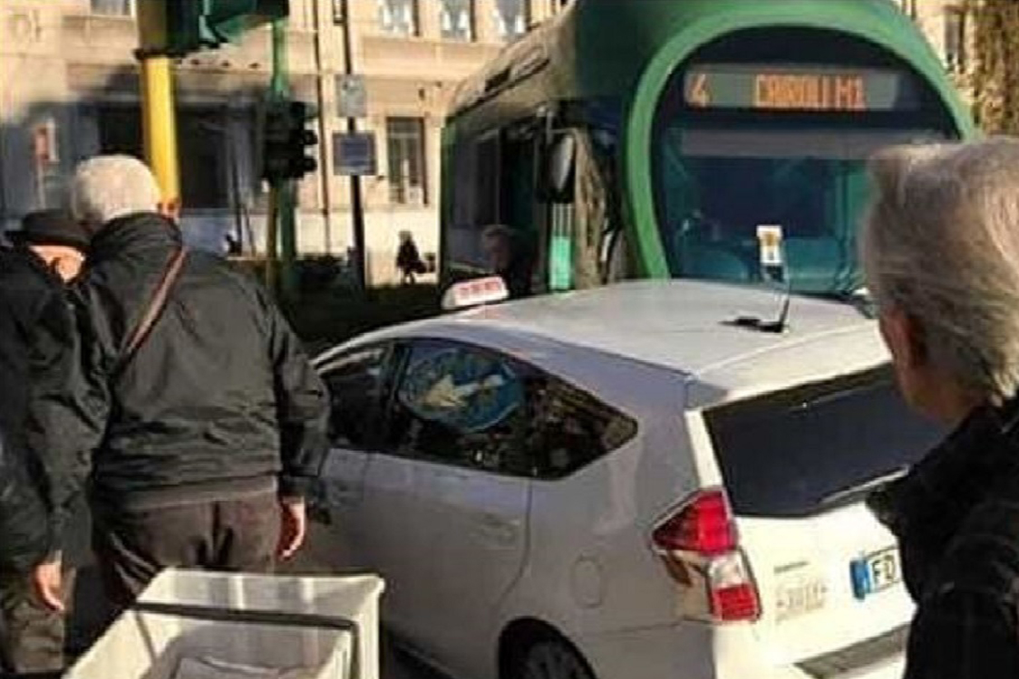 Incidente fra un tram della linea 4 e un’auto in piazzale Maciachini a Milano.
