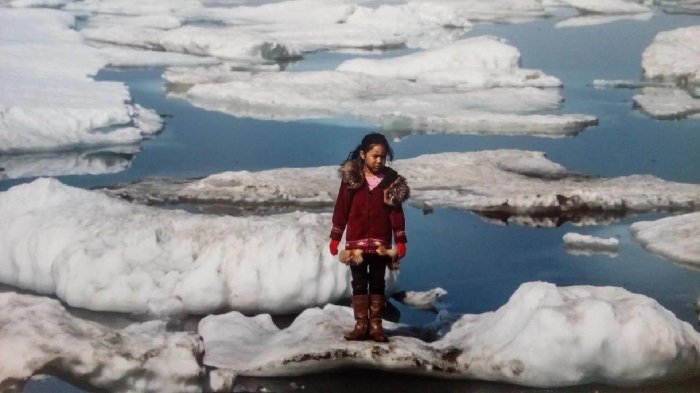 Vlad Sokhin, Ameria,11anni, della tribù Inupiat sulla riva dell’Oceano Artico a Barrow (Alaska, Usa 2016).