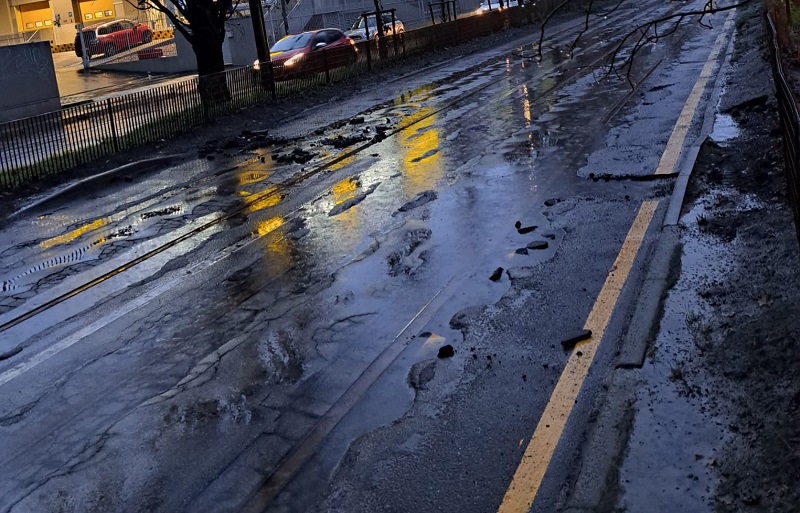 La corsia preferenziale della circonvallazione filoviaria, all’altezza di Via Lancetti, è stata chiusa perché troppo sconnessa.