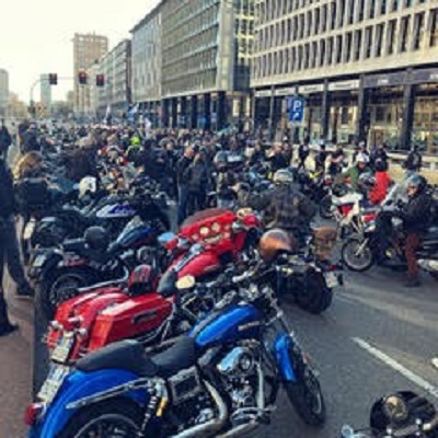 motociclisti che rombavano per via Vitruvio, provenienti da piazzale Loreto… ma prima, eccoli sfilare nei viali Piceno e Abruzzi. Molti venivano da più lontano, dal Forlanini, da Lodi, Gongonzola, Varese…Le moto: Harley Davidson, Guzzi, Ducati, BWN, Lambrette, Vespe.. Presenti i Chapter Harley Davidson e numerosi Vespa Club.