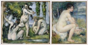 Nonostante queste differenze, i due hanno condiviso il medesimo destino, trasformandosi, mentre erano ancora in vita, nei numi tutelari di tutti quegli artisti che nel corso del Novecento hanno continuato a sviluppare e rielaborare il frutto della loro sperimentazione. L’esposizione si completa con la sezione che documenta quanto decisivo sia stato l’impatto e l’influenza che Renoir e Cézanne ebbero sulla successiva generazione di pittori, attraverso il confronto tra due opere di Cézanne e Renoir con due dipinti di Pablo Picasso (Cézanne, Pommes et biscuits, 1880; Picasso, Grande nature morte, 1917; Renoir, Femme nue couchée, 1906; Picasso, Grand nu à la draperie, 1921-1923).