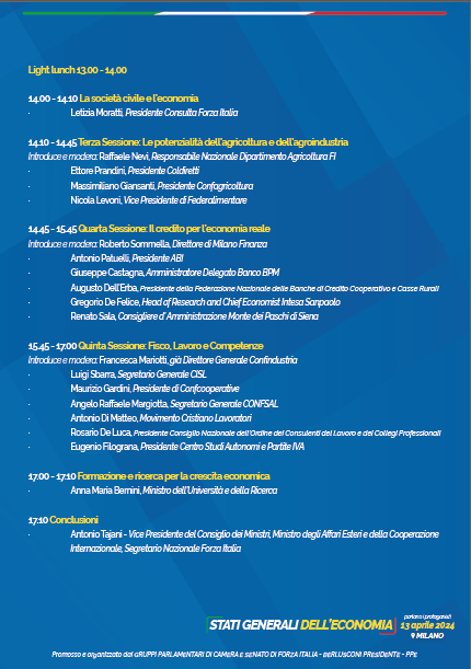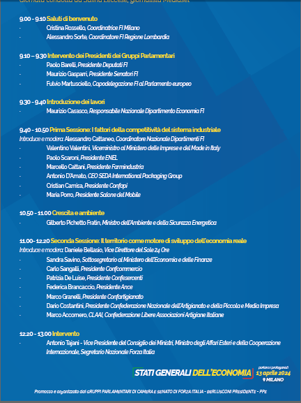 Il 13 Aprile Milano ospiterà gli “Stati Generali dell’Economia di Forza Italia”.
