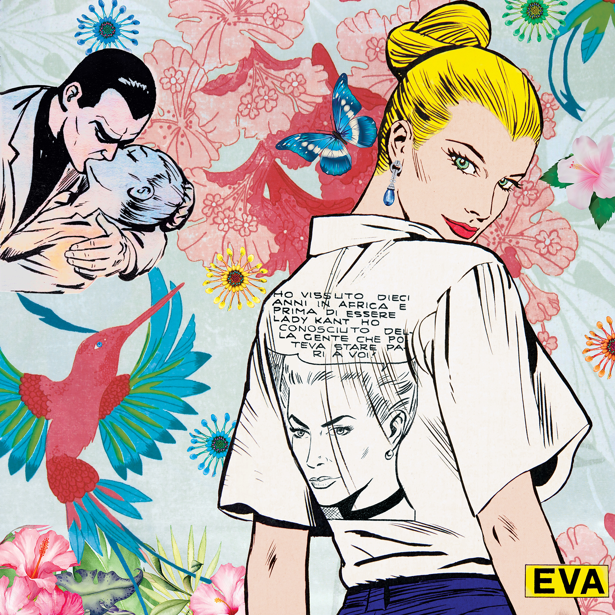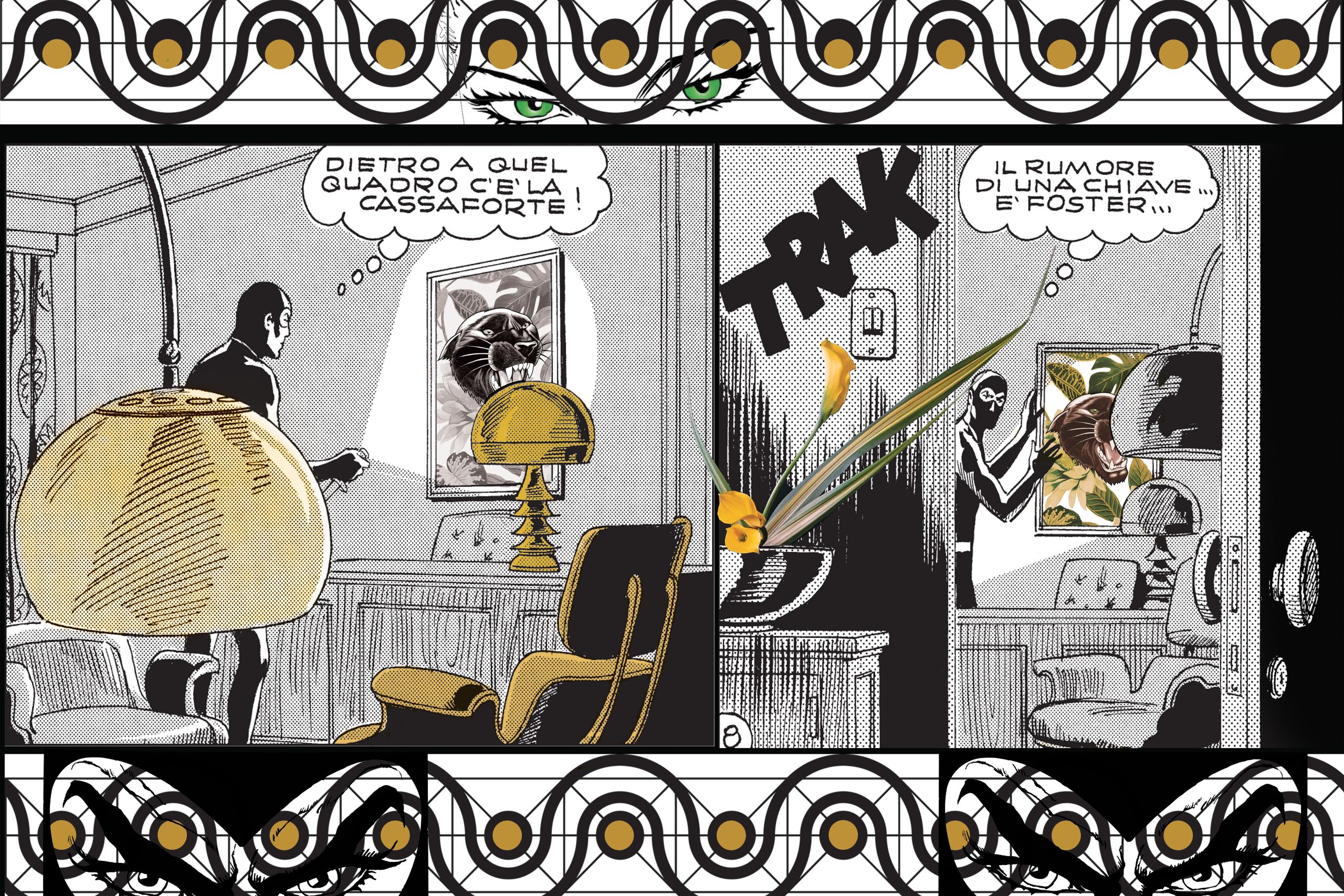 L’opera del trittico “Colpo Eccezionale” in open set edition, è firmata dall’artista Cristina Stifanic e comprende oltre il Quadro Vino “Diabolik”, due bellissime opere dell’artista “Colpo Eccezionale” e “Cheers”. Per la prima volta il fumetto come arte pop entra a fare parte dell’esposizione in mostra alla Galleria Paola Colombari con l’artista Cristina Stifanic, artista digitale ecclettica alla continua ricerca di immagini, di cui ricombina il patrimonio genetico donando loro una nuova vita. Possiede infatti i diritti dei personaggi che popolano fumetti “Cult” italiani come Diabolik ed Eva Kant, Pantera Bionda ed altri. Cristina cattura nuove estetiche creando un linguaggio visivo che ha la capacità di abitare universi differenti come quelli del fumetto, degli NFT, dell’intelligenza artificiale generativa e della realtà aumentata. In mostra un’opera digitale stampata su tela sulla quale eseguirà interventi pittorici ed applicherà la realtà aumentata per raccontare gli oggetti iconici del design riportati sulle tavole. Il fumetto da cui sarà tratta ed elaborata l’opera è “Diabolik indaga” stampato nel 1975 di cui l’artista conserva copia originale e diritto di utilizzo delle immagini. In mostra è esposto anche il ritratto di Eva Kant, arricchito dalla realtà aumentata. La suggestiva espressione dell’occhiolino di Lady Kant ed il volo della farfalla blu di Nobokov creano un’atmosfera incantata ed onirica.