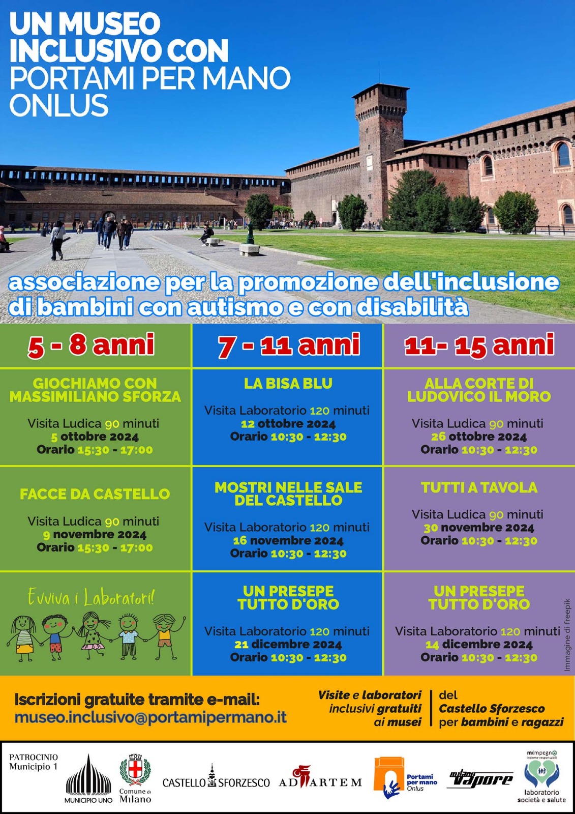 L’iniziativa promossa dall’ufficio i servizi educativi e accessibilità del Castello Sforzesco e Portami per mano Onlus associazione per la promozione dell’inclusione di bambini e ragazzi con autismo e con altre disabilità, in collaborazione con la società ad Artem.
