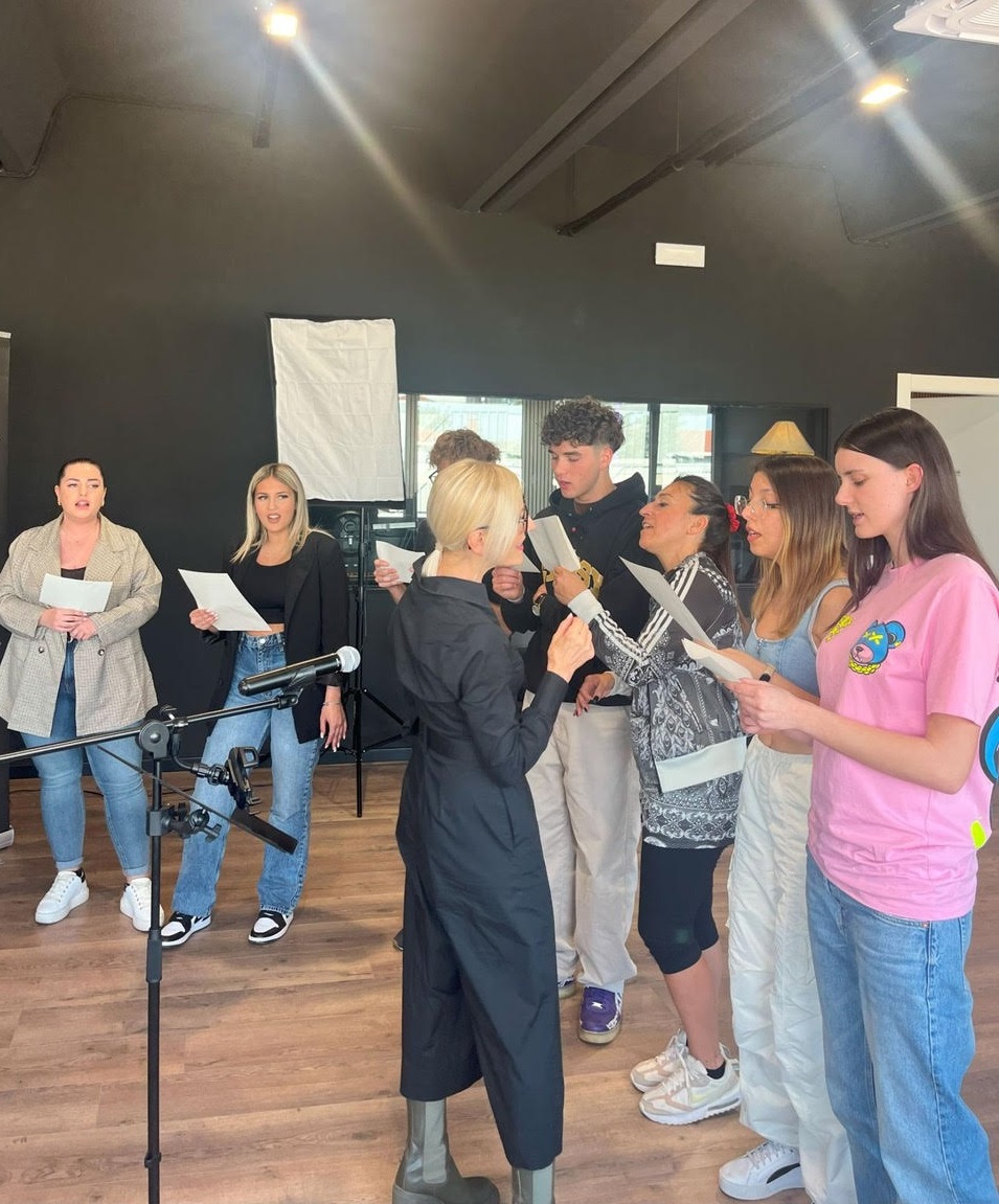 Sabrina Marrano ci accoglie nei suoi nuovi studi televisivi e di registrazione musicale, a Novara. L’obiettivo ci spiega è quello di “ formare professionalmente i talenti e orientarli verso il lavoro nel settore musicale . Interpretazione dei brani, miglioramento nell’intonazione, capacità di relazionarsi, mettere a punto i suggerimenti della docente, ma soprattutto i valori per muoversi in un mondo complesso quale l’industria discografica.”
