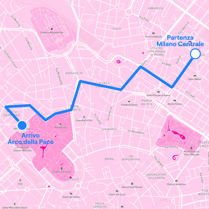 Il percorso del Milano Pride 2024 partirà alle ore 15:00 di oggi, sabato 29 giugno, con il ritrovo dei partecipanti in via Vittor Pisani davanti alla Stazione Centrale, e si concluderà intorno alle 18:00 all’Arco della Pace passando per piazza della Repubblica, viale Ferdinando di Savoia, viale della Liberazione, via Melchiorre Gioia, Bastioni di Porta Nuova, piazza XXV Aprile, via Francesco Crispi, Bastioni di Porta Volta, piazza Lega Lombarda, viale Elvezia, via Francesco Melzi d’Eril e corso Sempione. All’Arco della Pace ci sarà l’evento finale che durerà all’incirca fino alle 1:00 del mattino.