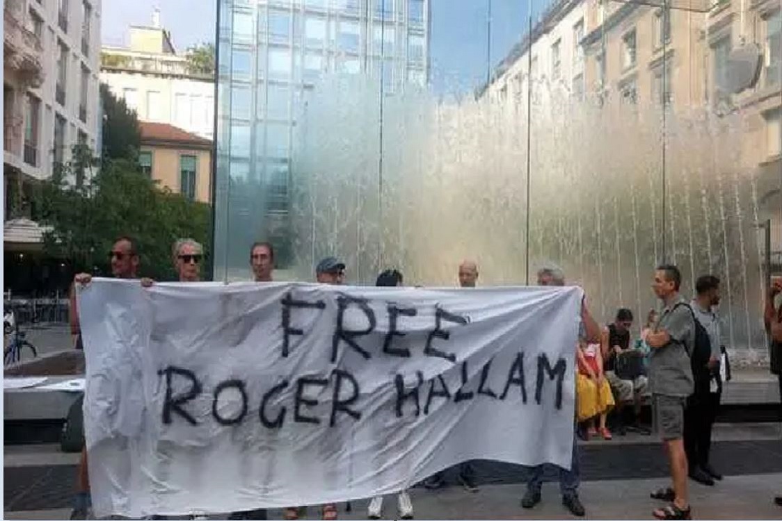 Colore rosso nella fontana della centralissima piazza Liberty a Milano e uno striscione per chiedere la liberazione di Roger Hallam, fondatore dell’associazione per il clima Extinction Rebellion, condannato a 5 anni di prigione da una corte londinese il 18 luglio scorso con “l’accusa di aver cospirato su zoom per bloccare l’autostrada M25 nel novembre di due anni fa”.