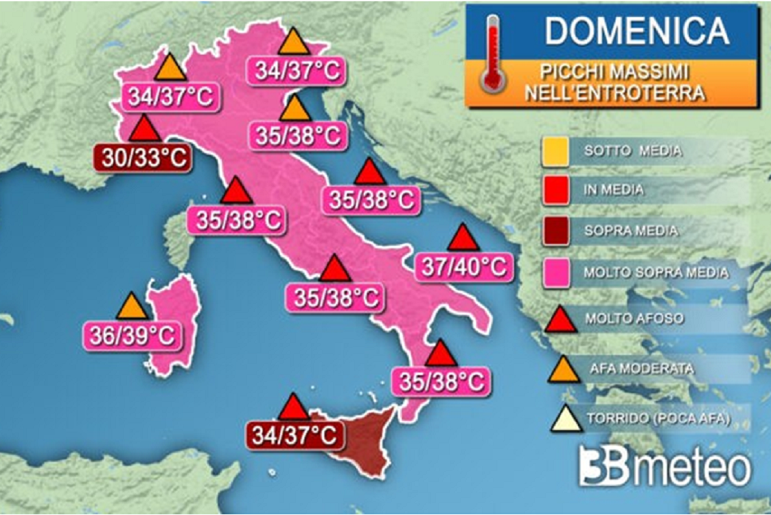SETTIMANA DI FERRAGOSTO ROVENTE, ALMENO NELLA PRIMA PARTE – “Il picco di questa nuova onda di calore si sperimenterà nella settimana di Ferragosto, almeno nella prima parte quando tra l’11 e il 14 agosto al Nord si potrebbero registrare punte di 36-38°C, fino a 38-40°C sulle zone interne del Centrosud. Farà altresì caldo pure di notte, con temperature che potranno mantenersi attorno ai 28-30°C anche in tarda sera in particolare sui settori costieri e nelle aree urbane. Da Ferragosto in avanti l’anticiclone potrebbe subire un quantomeno parziale indebolimento con qualche temporale in più e un progressivo smorzamento della canicola a partire dal Nord. Tuttavia si tratta di una ipotesi che necessiterà ancora di ulteriori analisi e conferme data la distanza temporale” – concludono da 3bmeteo.com