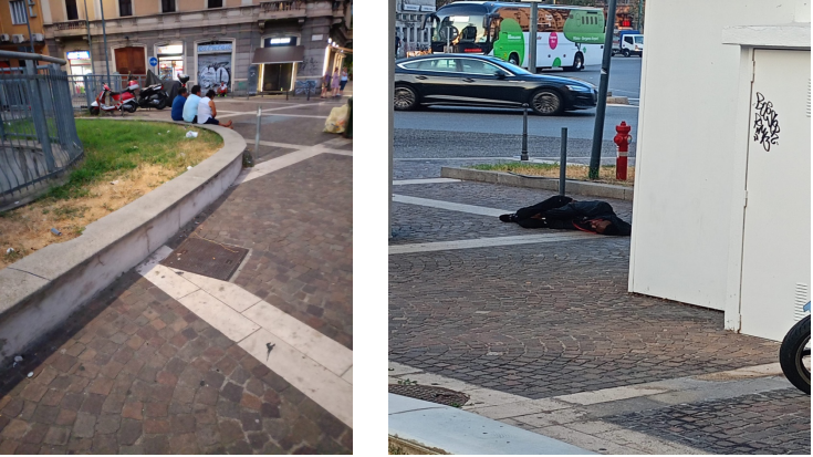 L’installazione di dissuasori per impedire la seduta e lo stazionamento di queste persone che impropriamente utilizzano l’area potrebbe eliminare il fenomeno segnalato assieme all’installazione di telecamere (con relativi cartelli di avviso) a scopo dissuasivo e deterrente nei confronti di eventuali malintenzionati.