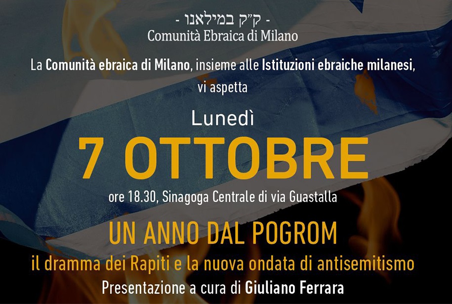 A Milano “L’ondata di antisemitismo ci ha colto di sorpresa, i segnali c’erano, non li abbiamo voluto vedere c’erano da anni”: lo ha detto Alfonso Arbib, rabbino capo della comunità ebraica di Milano intervenendo all’incontro .”Un anno dal Pogrom – Il dramma dei Rapiti e la nuova ondata di antisemitismo” che si è svolto alla sinagoga di via Guastalla, organizzato dalla comunità ebraica di Milano per l’anniversario dell’attacco di Hamas a Israele del 7 ottobre scorso.