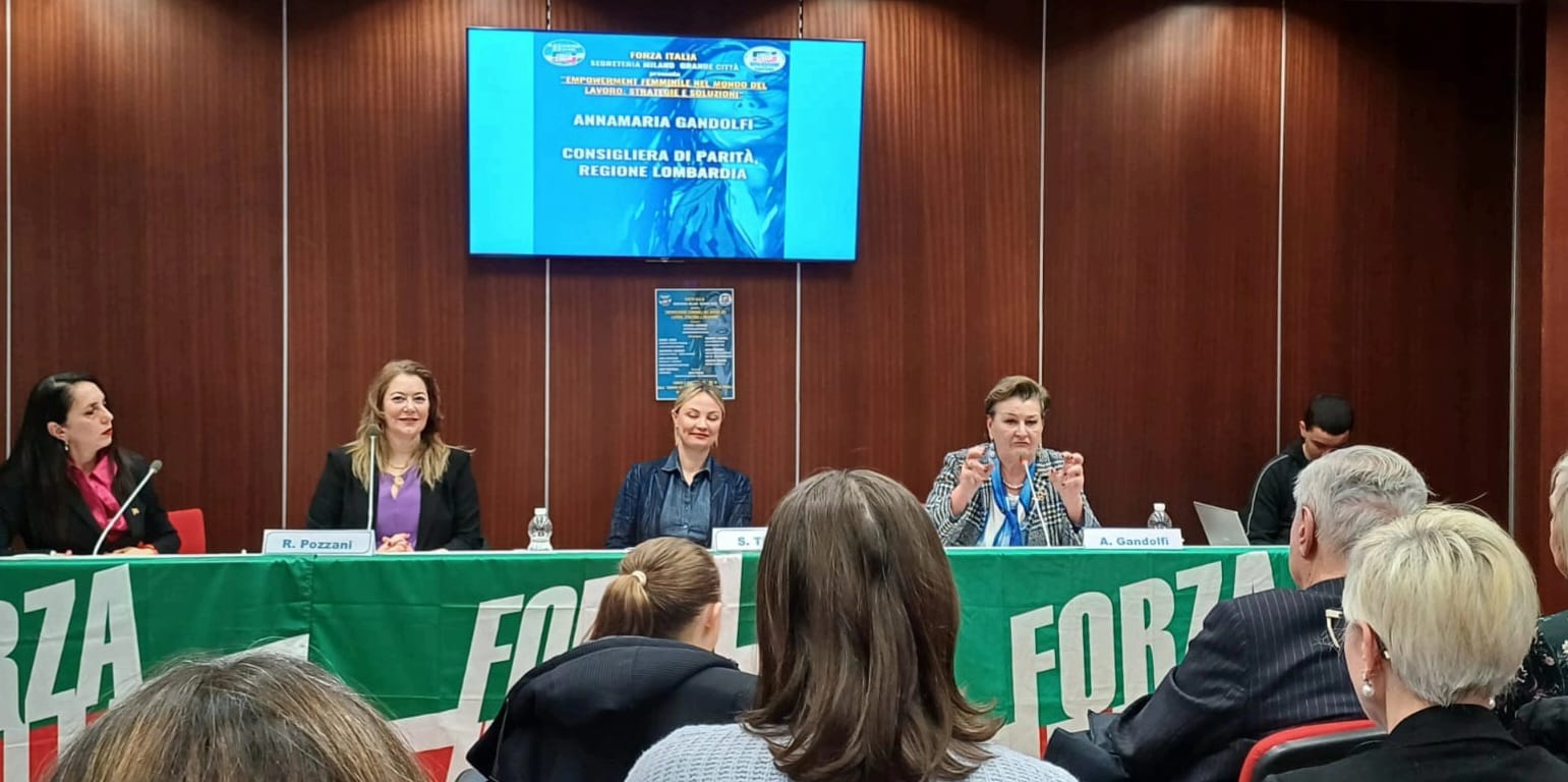 L’incontro ha visto coinvolta come organizzatrice e moderatrice Rosa Pozzani, Responsabile di Azzurro Donna Milano e Capogruppo FI Municipio 4. Pozzani ha sottolineato la disparità di trattamento tra uomini e donne nel mondo del lavoro a fronte di risultati più rapidi e brillanti negli studi da parte di queste ultime. Per fornire qualche dato, sono oltre il 70 per cento le donne che lasciano il lavoro entro il terzo anno di età del primo figlio perché non riescono a conciliare l’impegno lavorativo con le responsabilità famigliari. Da notare poi – afferma la Pozzani – che, se in Italia ci fosse un livello occupazionale femminile pari a quello europeo avremmo un aumento del PIL di oltre il 7%.