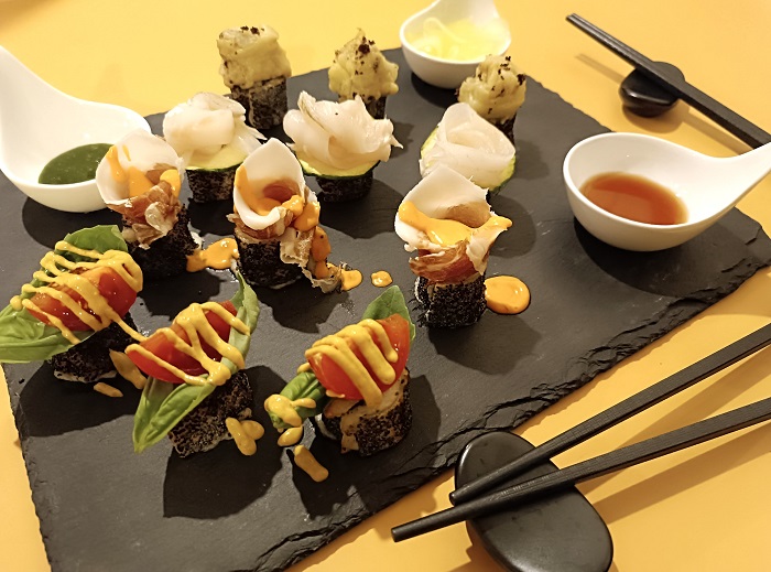 Un lavoro sulla tecnica, sul gusto e sull’estetica che ha portato al menù Experience, che oggi è unico al mondo e propone, fra le altre idee, il Sushi di Pizza, i Pizzoccari, la Lasagna, l’Hot Dog, il Ue Lington e via con le proposte… tutte sorprendentemente curate nei minimi dettagli, nel gusto e nella presentazione.