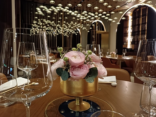 Con il recente restiling, Jin ha completato il suo desiderio che era quello di accogliere i clienti in un ambiente che fosse al tempo stesso elegante e unico ma anche accogliente e non “ingessato”. Il risultato è indimenticabile, grazie ai legni pregiati, al marmo di Carrara e soprattutto all’illuminazione con 1.250 punti luce sospesi e scenografici.