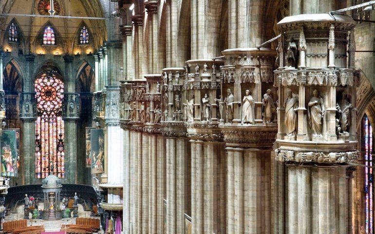 Intanto, il Duomo è l’unica Chiesa al mondo che ha statue anche nei capitelli delle colonne interne.