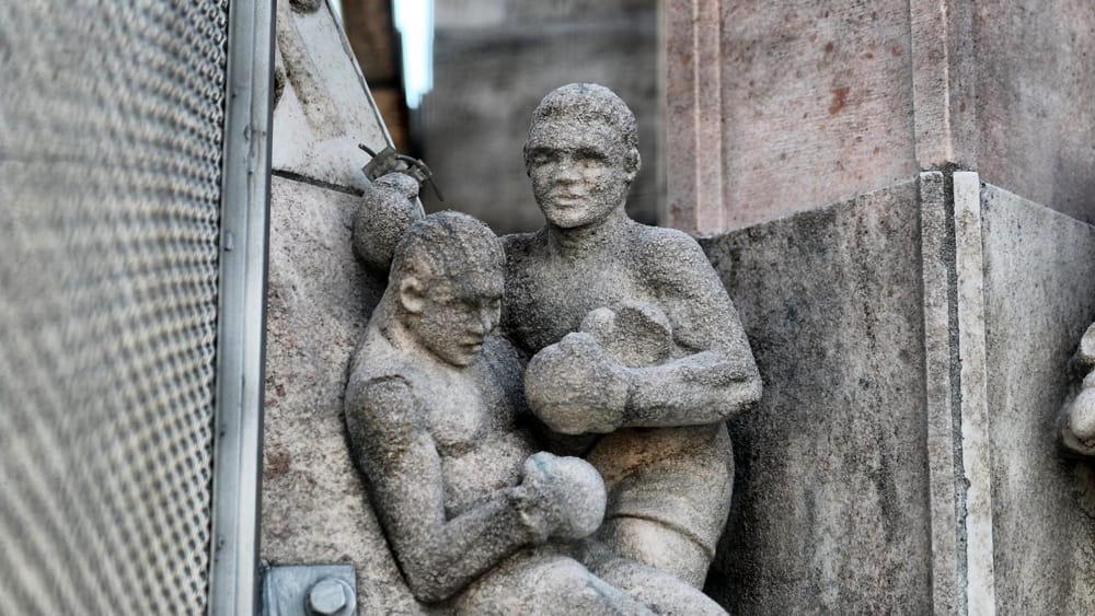 Ma anche le effigi di Mussolini (rovinata) e Napoleone più la raffigurazione dei pugili Primo Carnera ed Erminio Spalla che si affrontano.
