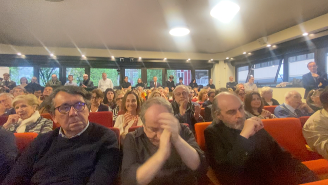 E’ un libro scomodo che va subito a ruba nel banchetto improvvisato fuori dalla sala.