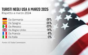 Non solo l’Europa: anche i viaggiatori dal Canada sono in netto calo, in parte a causa delle provocazioni di Trump che ha parlato apertamente della possibilità di “colonizzare il Canada come 51° stato”. Le principali compagnie aeree canadesi hanno ridotto i voli verso destinazioni USA, mentre le visite in auto sono diminuite del 32% a marzo.