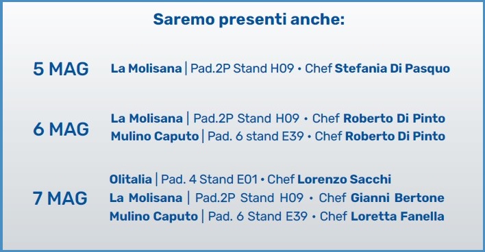 L’associazione in fiera proporrà una serie di eventi demo, educational e infotainment, volti a promuovere in modo interattivo e partecipato prodotti, specialità, ricettazioni e preparazioni gastronomiche da tutto il mondo ai visitatori della manifestazione, con particolare focus ai grandi compratori – italiani e internazionali – partecipanti al programma Incoming. Ogni giorno l’area si anima di appuntamenti, guidati da due resident chef: Fabrizia Ventura, Consigliere Nazionale di APCI e riferimento del Gruppo Donne APCI e Andrea Azzarito, in rappresentanza della Squadra Nazionale APCI Chef Lab.