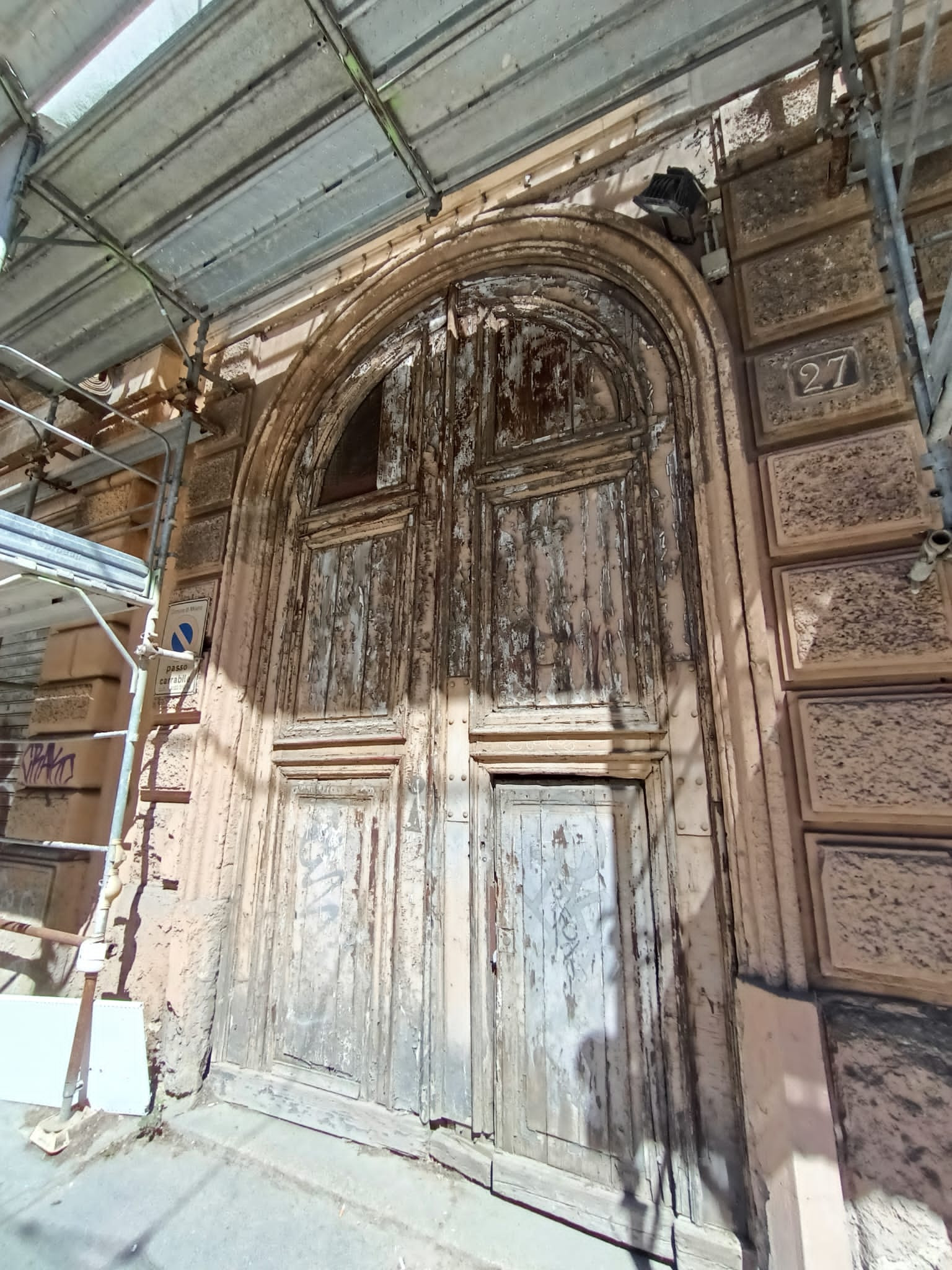 posto di riattivarlo ha iniziato a demolirlo con l’idea di costruire un altro complesso residenziale, ignorando completamente i vincoli architettonici. Oggi il cantiere è fermo da anni e i ponteggi continuano a bloccare il marciapiede, costringendo i pedoni a camminare in mezzo alla strada. È solo questione di tempo prima che qualcuno si faccia male. Chi si prenderà la responsabilità in quel caso?