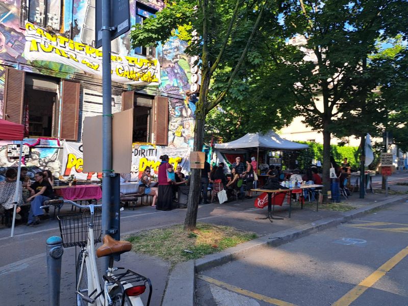 Ecco dunque che il Centro Sociale Il Cantiere ha lanciato una mobilitazione che consiste in una nuova attività illecita: l’occupazione abusiva del marciapiede di Viale Monterosa con tavolini e gazebo dove si può bere e mangiare.