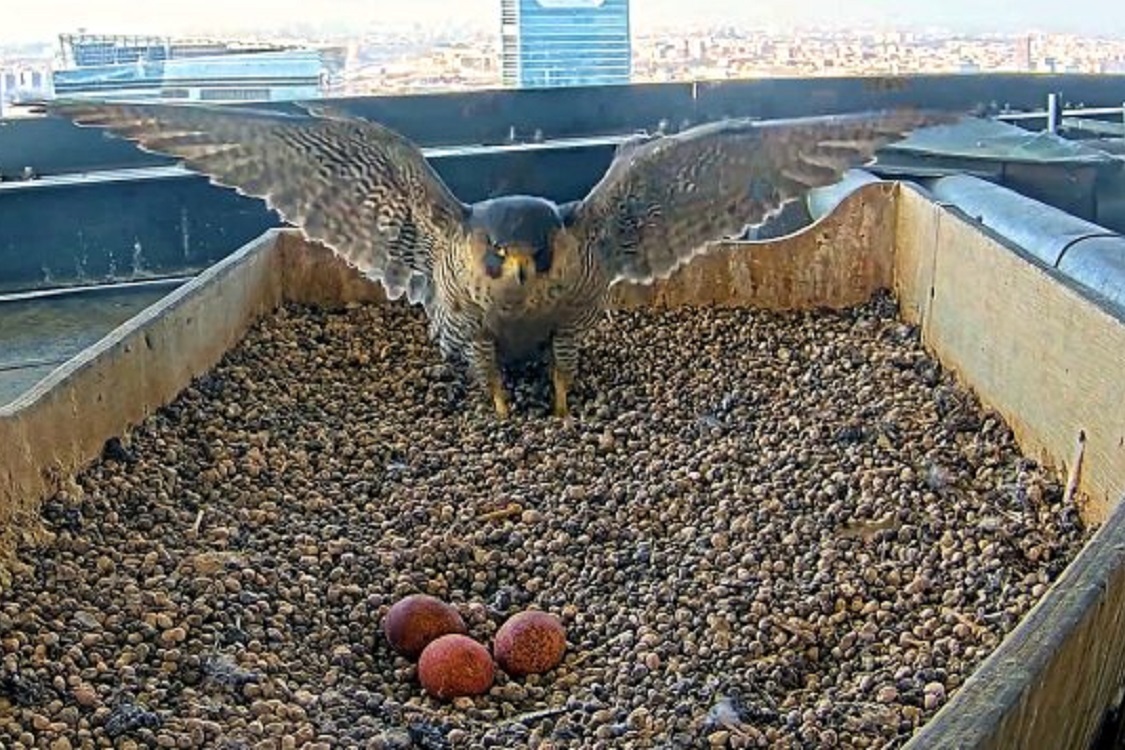 I due falchi della Regione devono aver trovato abbondanza di cibo nella zona e così hanno nidificato. Di solito si nutrono di altri volatili che predano in volo, tra cui piccioni, colombi, rondoni.