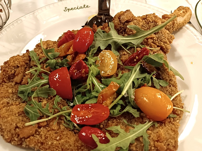 Questa è Speciale Osteria, il nuovo indirizzo che di insolito per la zona ha anche le dimensioni. Quattro grandi vetrine d’angolo, due sale interne con circa 70 posti, un dehor con un’altra trentina e la grande cucina a vista, sovrastata da un vetro cattedrale colorato che attira l’attenzione.