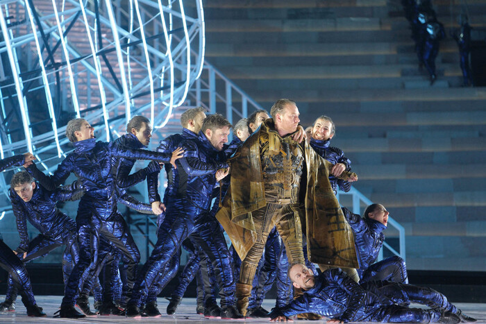 A incombere sulla scena una grande clessidra, simbolo di ‘Vanitas’, pronta a rompersi e a liberare la vita dallo scorrere del tempo, dalla mortalità. E un’esplosione ‘atomica’ che, a 80 anni da Hiroshima e Nagasaki, è allo stesso tempo un monito e una riflessione sull’istinto autodistruttivo dell’uomo. Ma che ricorda anche quella esplosione generativa che diede vita all’Umanità, il Big Bang. Un connubio tra arti e discipline diverse, tra le quali la scherma, sorprendente protagonista delle coreografie firmate da Poda e alla quale si sono allenati più di 200 artisti.