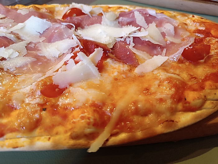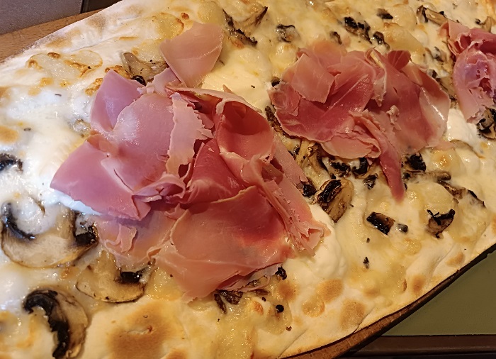 Ma non ci dimentichiamo di raccontarvi com’è la pizza priva di lievito, anche se il modo migliore per scoprirla è quello di andare a provarla di persona… friabile, leggerissima e altamente digeribile, anche se sottilissima è resistente e sorregge benissimo gli ingredienti, non si spezza se non sotto i denti regalando un gustosissimo effetto crunchy che valorizza il gusto degli ingredienti… consigliatissima a chi odia le pizze gommose e il suggerimento è quello di provare anche le varianti con farine speciali, grano saraceno, farro, Senatore Cappelli, canapa e grano arso che vengono offerte mensilmente a rotazione.