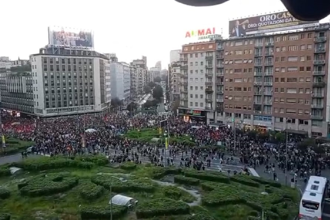Nella foto in alto e nel video in basso quanto è accaduto in piazzale Loreto a Milano con vomitevoli urla contro Giorgia Meloni: