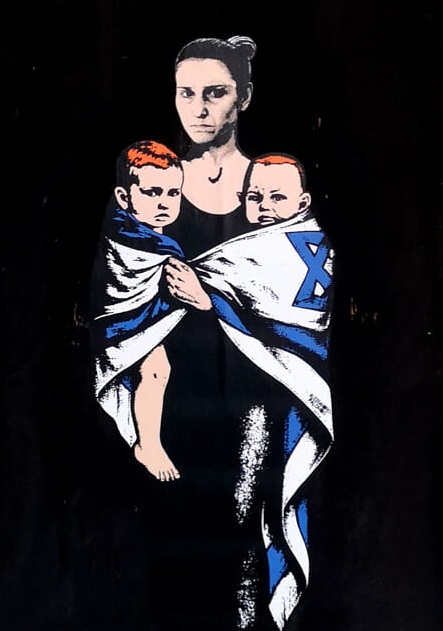 L’immagine centrale del murale ritrae Shiri Bibas insieme ai suoi bambini, Kfir e Ariel. Kfir, che al momento del rapimento aveva solo nove mesi, è diventato il più giovane ostaggio di tutto il conflitto. I caratteristici capelli rossi dei bambini sono ormai un tratto distintivo riconosciuto nelle campagne globali per la liberazione degli ostaggi.