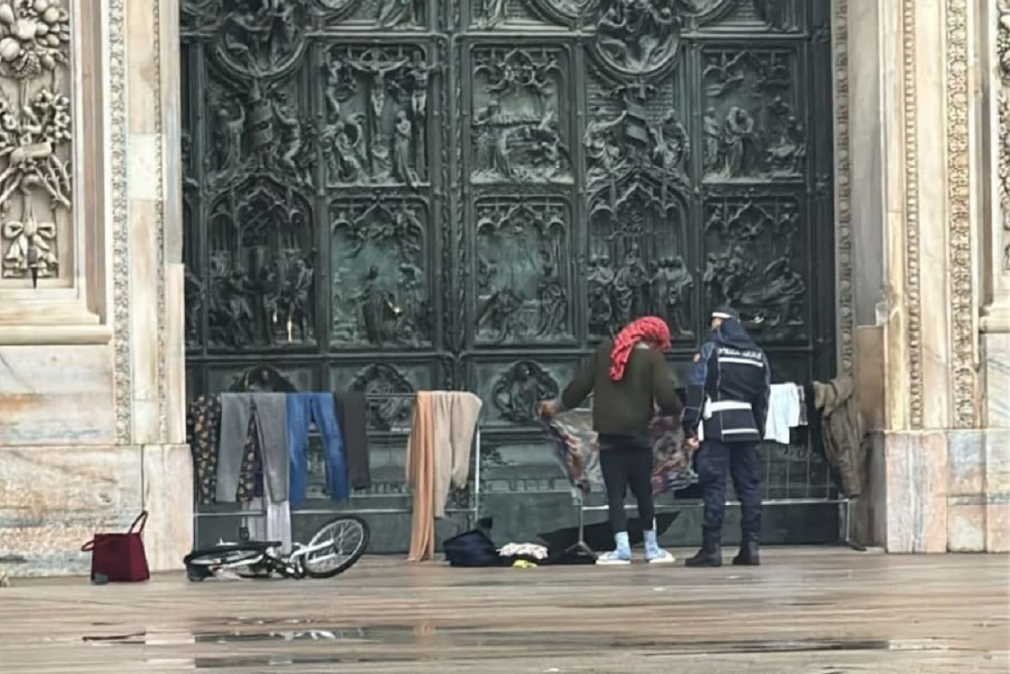 Nuove vette del degrado di Milano. Gente che si accampa all’ingresso della Cattedrale.