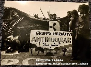 20 marzo – Manifestazione Antinucleare a Montalto di Castro: Indiani metropolitani, militanti di Autonomia Operaia e del movimento del 77 partecipano alla Festa della Vita sui prati di Pian dei Gangani per una manifestazione antinucleare contro l’installazione di due centrali termonucleari previste dal Piano Energetico Nazionale del 1975. (In Italia qualsiasi possibilità di fonte energetica attraverso il nucleare verrà sempre bocciata, anche attraverso un referendum, ma i nostri governi acquisteranno energia nucleare dalla Francia pagandola “cara”, con le centrali piazzate non distanti dai nostri confini, quindi anche noi soggetti ai pericoli in caso di incidenti e emissioni di radiazioni)