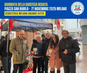 ”Oggi con centinaia di attivisti di Forza Italia abbiamo presidiato Piazza San Babila per celebrare la giornata della Giustizia Negata. Ricordiamo una giornata del 1994 in cui nei confronti di Silvio Berlusconi la giustizia venne deviata in favore di una spettacolarizzazione totalmente estranea al diritto e alle libertà individuali e costituzionali. È la stessa deviazione che ha fatto nascere il processo mediatico che Forza Italia combatte dalla sua fondazione. Una deviazione del sistema giudiziario che continua a mostrificare e rovinare migliaia di persone che poi vengono prosciolte o assolte da tutte le accuse. Ci impegniamo da oggi a sostenere le ragioni del Sì in una battaglia referendaria che, una volta vinta, contribuirà realmente a creare le basi per una giustizia giusta. Da qui al Referendum contribuiremo a informare la cittadinanza sulle ragioni del Sì con gazebo, iniziative culturali, social e Tv e con testimonial come Tiziana Majolo e decine di professionisti”.