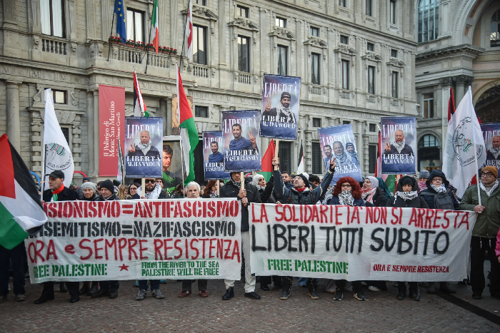 Contemporaneamente, associazioni palestinesi si sono riunite davanti a Palazzo Marino per manifestare contro l’arresto di Mohamed Hannoun. I partecipanti hanno chiesto la liberazione dei prigionieri palestinesi, con il rischio — monitorato dalle forze dell’ordine — di un possibile ricongiungimento dei due cortei proprio sotto l’ambasciata statunitense.