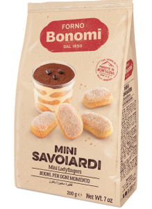 Sempre Forno Bonomi ha lanciato nei mesi scorsi i MiniSavoiardi, perché si sa, nelle feste in famiglia non può mancare il tiramisù, anche in versione monoporzione e questi piccoli gioielli di pasticceria sono perfetti per questo formato. Due i gusti: classici o al cioccolato. Si trovano in tutta la Grande Distribuzione, nelle gastronomie e sullo shop online.