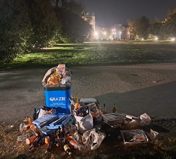 Ieri dalle 15 alle 24 è stato organizzato un Dj set al Teatro Burri, al centro del Parco Sempione, dal nome evocativo “Lost Boys”. Migliaia di giovani hanno invaso il parterre centrale del Parco Sempione, da poco risistemato a spese dei contribuenti, per ascoltare e ballare. Disseminati per il parco decine di autobar hanno rifornito di cibo e alcolici i partecipanti: inevitabile che il parco fosse a fine serata una distesa di bottiglie e rifiuti.Tra le proteste dei residenti della zona dell’Arco, a mezzanotte la musica martellante è stata spenta ma il Parco Sempione non si è certo svuotato. Anzi, a quell’ora è iniziata la parte più pericolosa dell’evento con decine di spacciatori a fare affari, centinaia di maranza pronti ad avventarsi su migliaia di ragazzi e ragazze in stato di ebrezza.