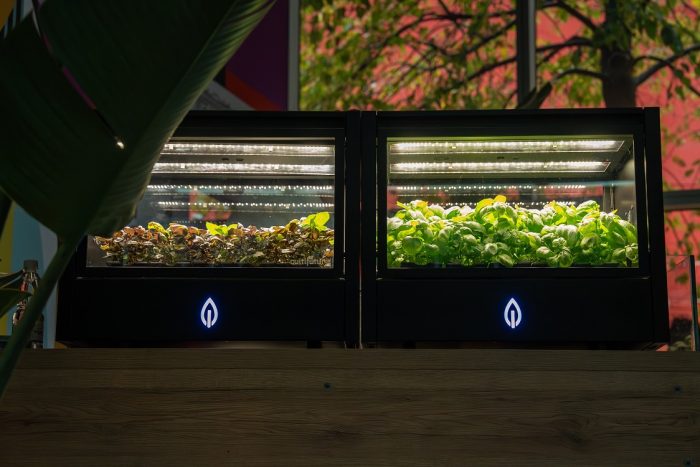 Si tratta di una serra idroponica connessa ad internet costruita con vetro e acciaio riciclati progettata per fare verticalfarming in modo molto semplice e adatto a contesti diversi: dalla ristorazione agli ambienti di lavoro, alle case, fino agli spazi educativi. Il design è semplice e modulare, un sistema di LED ricrea lo spettro solare; l’irrigazione a ciclo chiuso riduce il consumo d’acqua fino al 97%. Sensori intelligenti regolano in tempo reale le condizioni di crescita, rendendo possibile la coltivazione di oltre 50 varietà tra erbe aromatiche e microgreens. L’interazione è ridotta all’essenziale: un’app accompagna il ciclo di crescita, automatizzando luce, acqua e nutrienti.